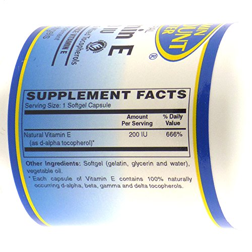 Natural Vitamin E is an essential nutrient and is the body's primary, fat-soluble antioxidant. Vitamin E can provide nutritional support for the cardiovascular system, prostate, skin, and the immune system. It can also help fight cell-damaging free radicals that cause oxidation stress in the body, which can contribute to the premature aging of cells. As a dietary supplement, adults take one (1) softgel capsule daily with meals, or as directed by a health care professional. Store in a cool dry place and away from direct light. These statements have not been evaluated by the Food and Drug Administration. This product is not intended to diagnose, treat, cure, or prevent any disease.Feature