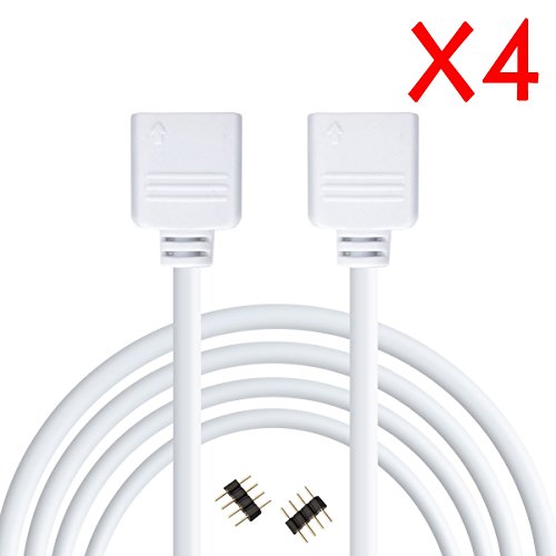 Ticoze 4pcs 2m LED Strip Connector Extension Cable Connect Female Plug for LED Strip Lights RGB 5050 3528 SMD with 8pcs 4 pin Connectors Male Free
