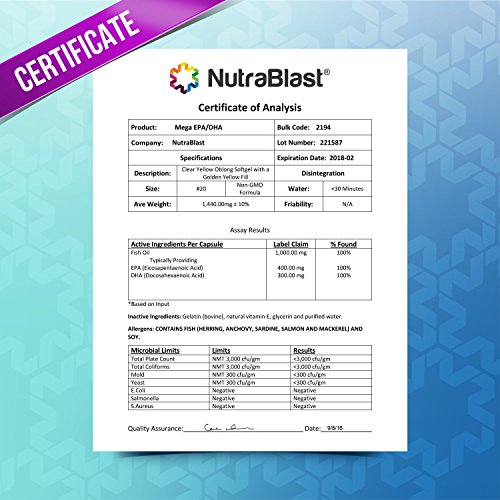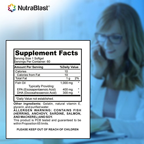 NutraBlast Fish Oil 1000Mg Omega-3 Fatty Acids Mega EPA DHA 400Mg/ 300Mg - Non-GMO - Burpless - Supports Mental, Cardiovascular, Skin, and Eyes...