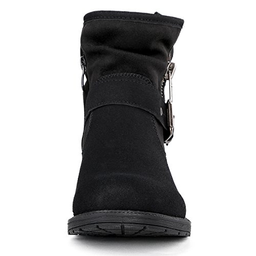 Binding : Apparel Product Description These ankle boots features buckle detailing, a zipper on the side will give you rock and roll edge. Finished with faux fur lining to keep your feet warm in winter. Looks great with the jeans and the dresses, a must for your winter wardrobe. 0