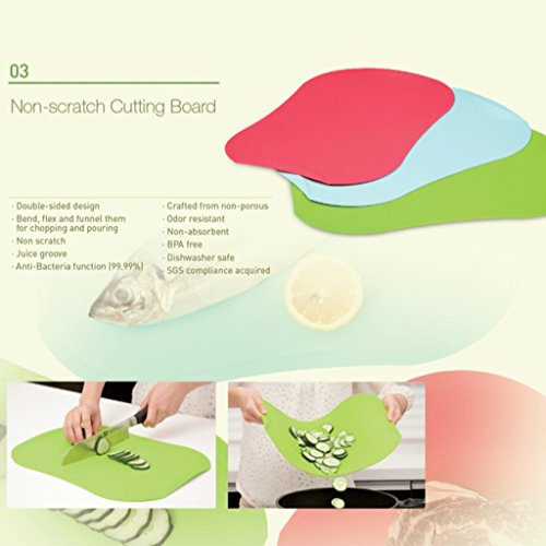 [doble] Non-Scratch Kitchen 2 Sided Anti-Bacterial Cutting Board, Flexible, Non-Slip, Juice Groove, Dishwasher Safe (Apricot) (Green)