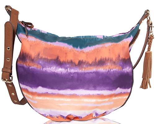 Jessica Simpson Womens Christina Ikat Adjustable Crossbody Handbag Purple Medium