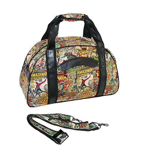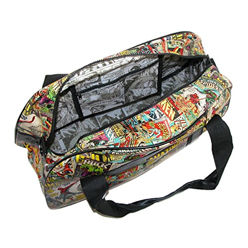 -. Binding : Apparel -. Brand : BB Designs -. Department : mens -. Feature : Measures 19.5 x 8 x 12 inches / Top zipper closure main compartment / Exterior has multi-color Marvel comic P.R.Int finish and features 1 6.5 inch zipper pocket with interior comic P.R.Int nylon lining. There are also 2 handles with a padded cushion at the middle for better grip / Interior has 1 7.5 inch zipper pocket and comic P.R.Int nylon lining -. Label : Marvel -. Manufacturer : Marvel -. PackageQuantity : 1 -. ProductGroup : Apparel -. ProductTypeName : BAG -. Publisher : Marvel -. Studio : Marvel -. Title : Marvel Comic Retro P.R.Int Gym Bag