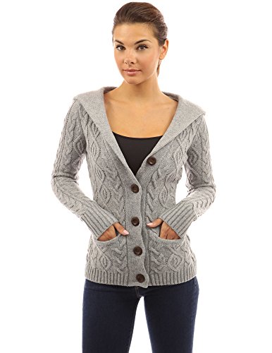 PattyBoutik Wool Blend Hooded Long Sleeve Pockets Button Down Cable Cardigan. Model in pictures is 5 feet 8 inches (173cm) tall wearing size S. (Note: The item may be a bit itchy as it contains wool.)