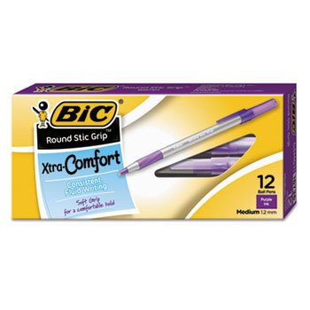-. Title : Round Stic Grip Xtra Comfort Ballpoint Pen, Purple Ink, 1.2mm, Medium, Dozen