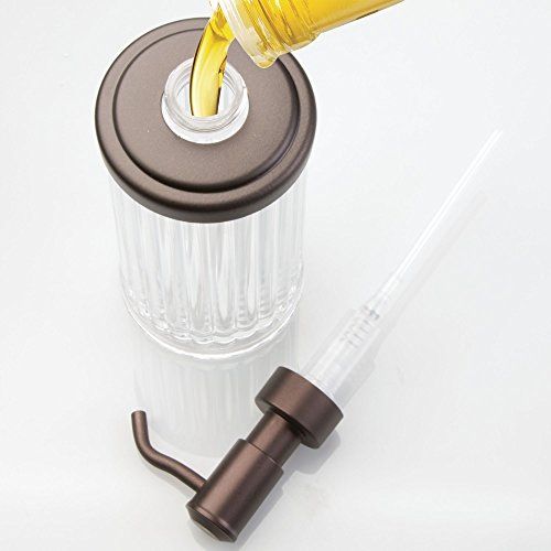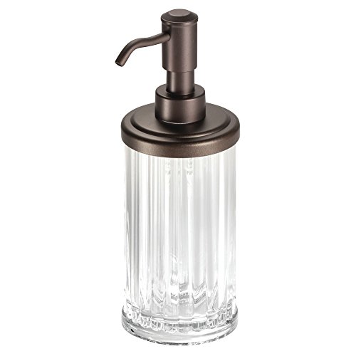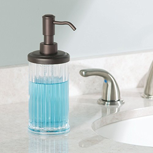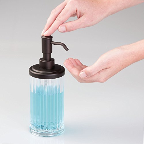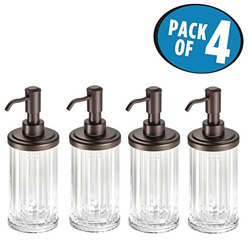 mDesign Liquid Soap Dispenser Pump Bottle for Kitchen Sink, Bathroom Vanity Countertops: Also for Hand Lotion & Essential Oils - Pack of 4, Clear Plastic Body with Bronze Pump Head