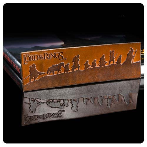 The beautiful The Lord of the Rings Fellowship of the Ring Silhouette Leather Bookmark features the classic silhouette of the 9 members of The Fellowship of the Ring as they set out from Rivendell on their quest to guide Frodo to Mordor and the destructive forces of Mount Doom.