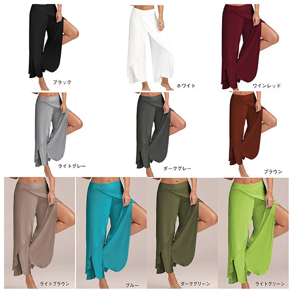| 商品説明 | スリット入り ロングパンツ ヨガウェア ダンス 無地 体型カバー |