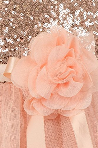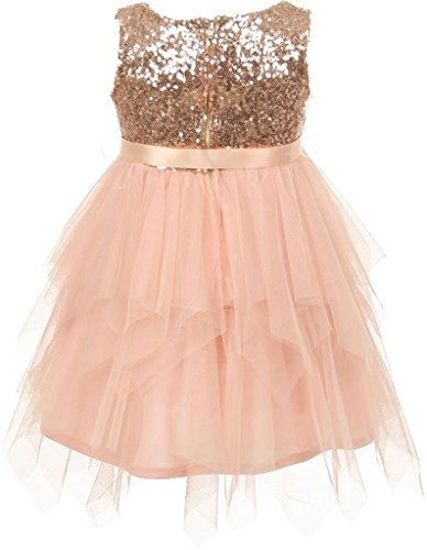 AkiDress Sequin Bodice with Double Layer Mesh Flower Girl Dress for Big Girl Red 6