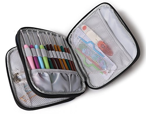 Perfect dimension (7L*1.2 W*5.7H) with double layer interior compartment,mesh pockets,individual and different size elastic loops to organizer your crochet needles better with.