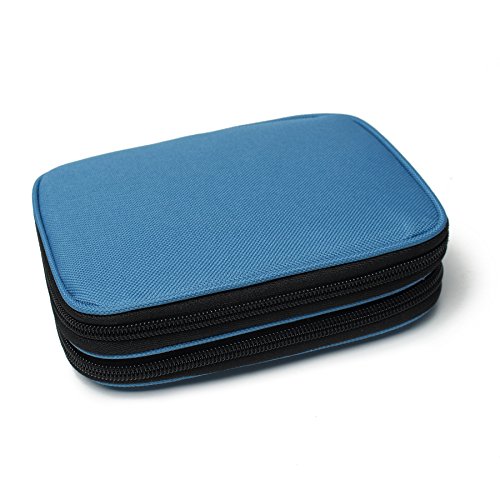 Goldwheat Crochet Hook Storage Case Organizer Zipper Bag Holder with Web Pockets for Various Crochets Needles and Knitting Accessories(Dark Blue)