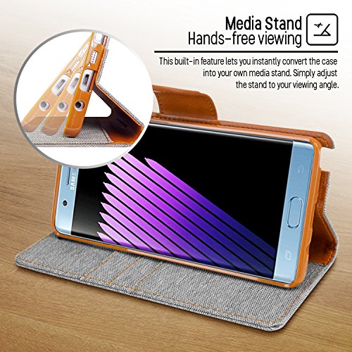 Galaxy Note 7 Case, [Drop Protection] GOOSPERY® Canvas Diary [Denim Material] Wallet Case [ID Card / Cash Slot] with Stand Flip Diary Cover w/ TPU Casing for Samsung Galaxy Note 7, Gray / Camel