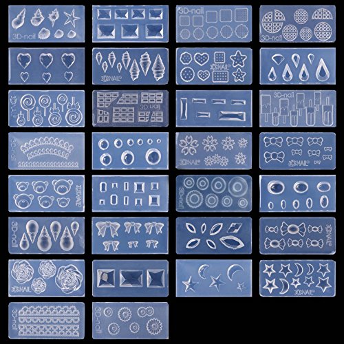 30 peice DIY cabochon mold set #7. Comes with designs ranging from a multitude of gemstone shapes, lollipops, seashells, lace, stars and moons, flowers, ice cream, pizza and so much more. These molds are a great way to add a 3D affect to yor nails. *NOTE*: Due to differences between monitor displays, actual color may vary slightly from image. b.m.c is a registered trademark of Remi Collections LLC and is exclusively distributed by Bundle Monster. The b.m.c trademark is protected by US Trademark Law.Feature