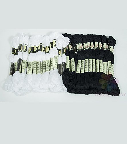 ThreadNanny Black and White Hand Embroidery Cross Stitch Threads Floss/skeins 24 of each color