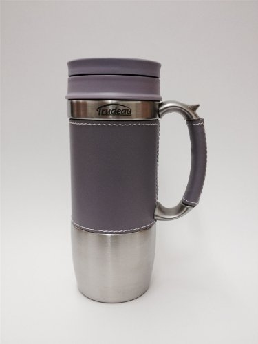 With the Board Room Travel Mug you'll be able to keep your favorite hot or cold beverage with you and keep it hot or cold. This double wall insulated travel mug will keep your hot drink hot, for up to two hours. It has a convenient (and distinctive) design and it will hold up to 16-ounces of your favorite beverage. Because of the mug's innovative design and quality build you'll no longer have to worry about coffee or tea stains on your cloths, because it's guaranteed leak-proof. It also features a non-slip base and Trudeau's patented Perfect Drink opening, so that you can drink from anywhere around the lid opening. Black leather like accents. Hand wash. Stainless steel. 5 year warrantee. By Trudeau a company that develops visionary products. Add an exciting flavor to your day, with Trudeau. Style eloquence, innovation Trudeau letting you savor life's little moments.