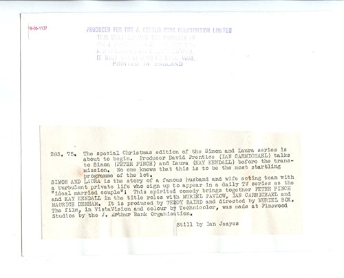MOVIE PHOTO: Simon and Laura 9.5"x7.5" Black and White Promotional Still Finch Kendall Carmichael FN