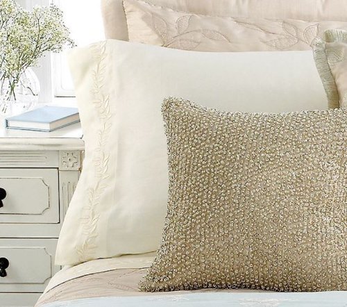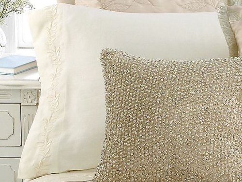 Martha Stewart MEADOW DRIFT Pair Standard Pillowcases, Embroidered Ivory