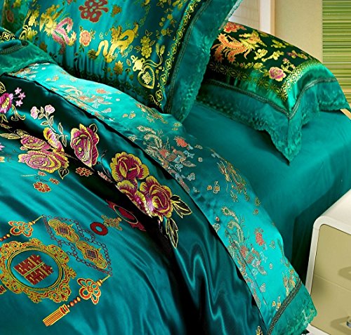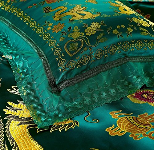 Best Jacquard Chinese Wedding Bedding Set Dragon Phoenix Double Blessing Embroidery Lace Silk Duvets Cover Set 4pcs Full Green