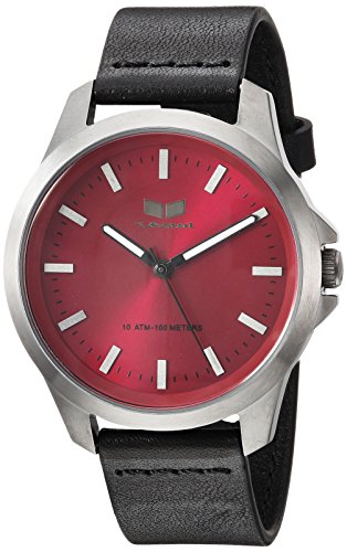 Vestal Quartz Stainless Steel and Leather Casual Watch, Color:Black (Model: HEI393L14.BK)