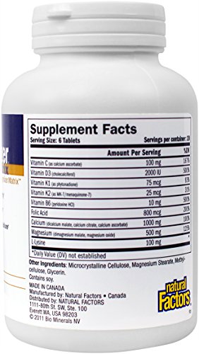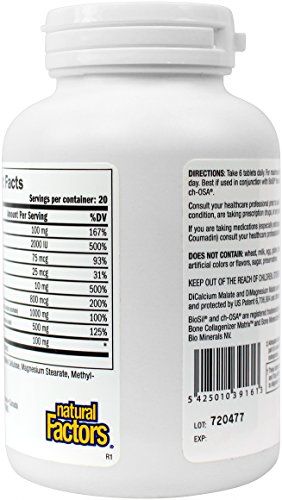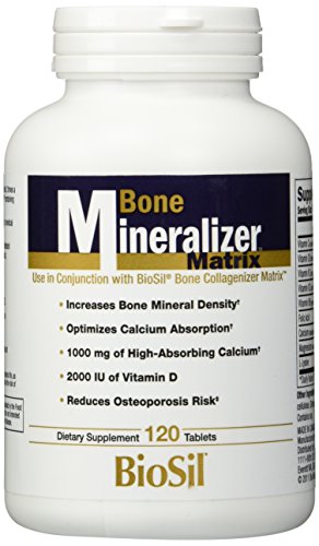 -. Binding : Health and Beauty -. Brand : Natural Factors -. EAN : 0811861111947 -. Feature : FIGHT THINNING BONES: A natural occurrence in our aging bodies is the onset of osteopenia, the gradual thinning of our bones. As you grow older existing bone is broken down faster than new bone is made. As a consequence our bones lose calcium and other minerals, becoming less dense, more porous, and more prone to fractures. / HIGH ABSORBING CALCIUM: Our unique formula provides your body with premium high-absorbing calcium, supplying your bones with a rich source of premium high-absorbing calcium and vitamin D. Key transporters then ensure delivery from bloodstream to bone. / VITAMIN D: Due to the low availability of Vitamin D in food sources, Vitamin D deficiency is common. Vitamin D plays a key role in our bodies, helping your body absorb the calcium integral to bone health. Vitamin D supplementation is especially important for those at risk for osteoporosis. / REDUCE YOUR RISK: There are many things that can put a person at risk for developing Osteoporosis, aging is just one of them. Supplementing with the right combination of Vitamin D and Calcium will help set you on the path to prevention. / OUR PRIVILEGE, OUR PASSION: Today, Natural Factors is one of the largest manufacturers of nutritional products in North America. But our origins reach back to the 1950s, and right from day one, we've always been fully committed to making products right. We are not a public company with shareholders to impress. Instead, we care about impressing you. -. IsAdultProduct : 0 -. Label : Natural Factors -. Manufacturer : Natural Factors -. MPN : BM9161 -. NumberOfItems : 1 -. PackageQuantity : 1 -. PartNumber : BM9161 -. ProductGroup : Health and Beauty -. ProductTypeName : HEALTH_PERSONAL_CARE -. Publisher : Natural Factors -. Size : 120 -. Studio : Natural Factors -. Title : BioSil - Bone Mineralizer Matrix, Promotes Increased Bone Mineral Density with Optimized Calcium Absorption, 120 Tablets -. UPC : 811861111947