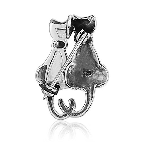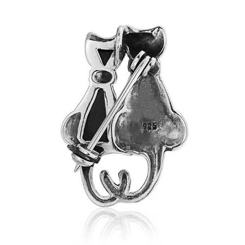 -. Feature : Pretty Cats Brooch Pin / Stone: 1.6 mm / Material: Sterling Silver, Marcasite, Resin, Mother of Pearl / Measure: 1.2 inch L x 1 inch W / Weighs 4.75 grams