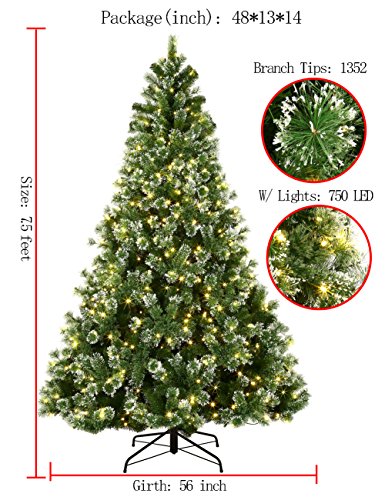 Includes 7.5'/9'H tree, prelit with 750/1000 LED clear lights; light instructions
