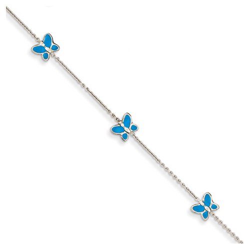 -. Title : Blue Enameled Butterfly Anklet, 14K White Gold