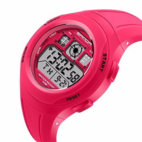 EVTCO Kids LED Digital Unusual Sports Outdoor Children's Wrist Dress Waterproof Watch with Silicone Band, Alarm, Stopwatch for Boy Girls Rose red