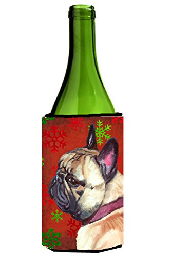 French Bulldog Frenchie Red Snowflakes Holiday Christmas Wine Bottle Beverage Insulator Hugger LH9580LITERK
