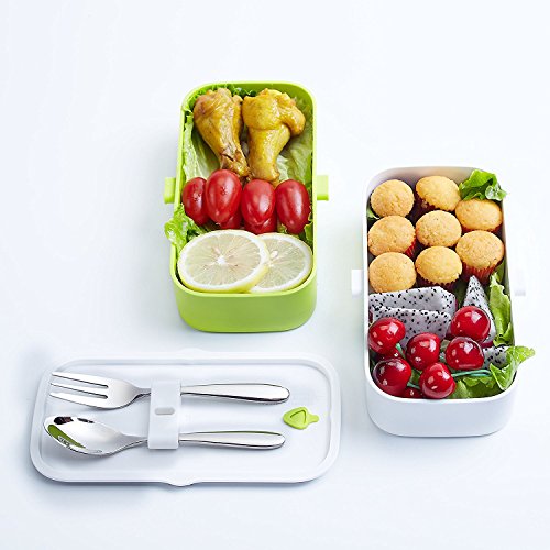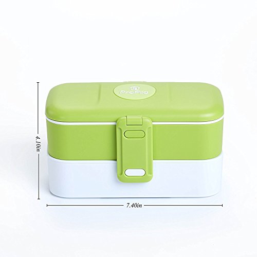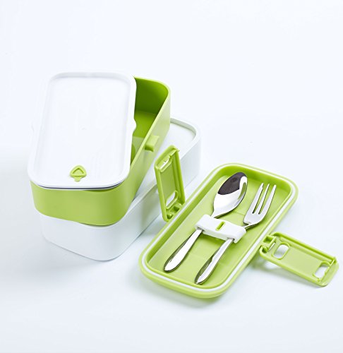 ProAid Leakproof Bento Box with Silverware 2 Layers Design Lunch Box ,FDA Approved,Safe for Microwave Fridge and Dishwasher,Green