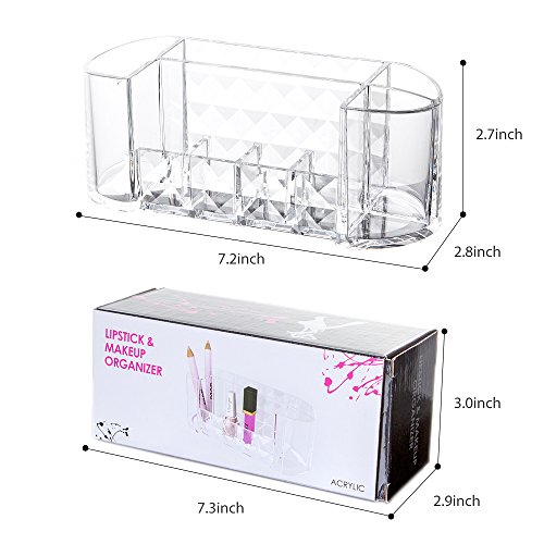 - Large Capacity Countertop Organizer - Spacious multi-function design with 4 grids lipstick organizer, 2 large makeup brush holders and 2 compartments for smaller makeup brushes or cotton swabs or other smaller makeup tools. It offers a stylish and functional way to keep cosmetics or stationeries neat, tidy and close to hand