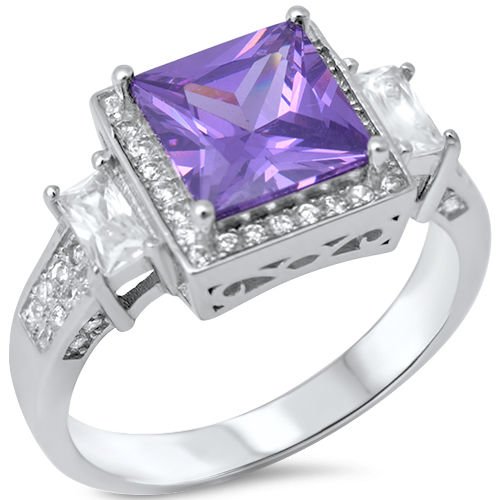 -. Title : 5.50ct Princess Cut Simulated Amethyst & Cz .925 Sterling Silver Ring Sizes 5-11