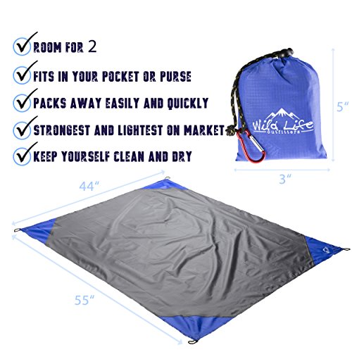 STOP SEARCHING, YOU'VE FOUND THE BEST: #1 pocket blankets on the market with weighted corners, corner loops, carabiner and carry pouch that doubles as a valuables bag. Pocketable and weighs just 3 ounces. Unfolds to 55" x 44", plenty of room for 2 to relax.
