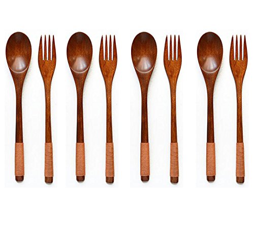 Antrader Kitchen Tableware Dinnerware Flatware Wood Cutlery Wooden Dinner Fork and Spoon Utensil Set( 4 Spoons + 4 Forks )