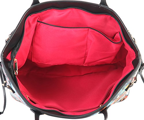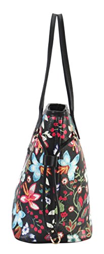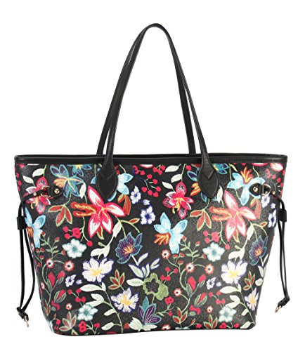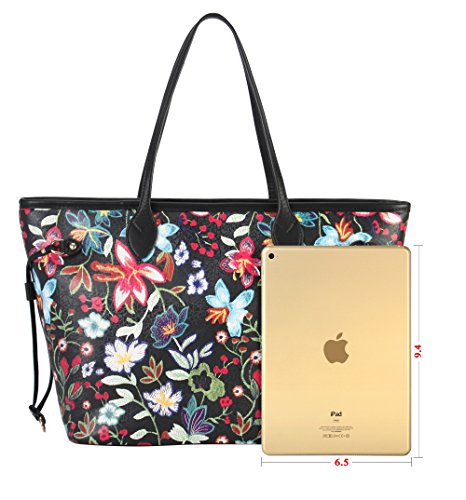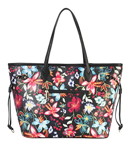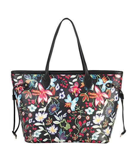 Diophy PU Leather Floral Embroidered Printed Pattern Large Shopping Tote OC-6524