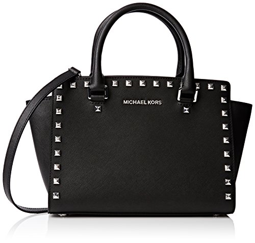 -. Title : MICHAEL KORS Selma Studded Saffiano Leather Medium Satchel Bag (Black)