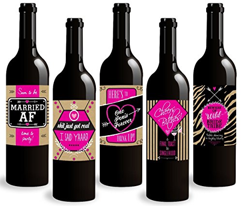 Standard Wine Labels Bachelorette Party Wine Bottle Labels 5-Pack. Celebrate Your Last Wild Single Night. Perfect Engagement Gift. Pack of 5.