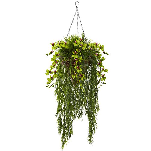 Nearly Natural 6849-GR Bamboo & Dendrobium Hanging Basket