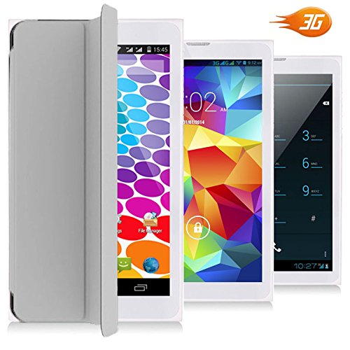-. Feature : 7.0 inches Android 4.4 Kitkat 3G Phablet 2-in-1 Tablet PC + GSM Wireless SmartPhone (Call as mobile phone) with FREE Smart Cover Case Built-in, Google Play Store and HD Capacitive Multi-Touch Screen / GSM Mobile Cell Phone - Support 3G GSM QuadBand: GSM 850/900/1800/1900MHz WCDMA 850/2100MHz|Make and receive calls directly from the tablet itself with the built-in MIC and speaker / Powered by MTK MT8312 DualCore Processor 1.2GHz CPU, 8GB Internal Memory, Latest Android 4.4 Kitkat Operating System, Integrated 802.11 b/g/n, Bluetooth, Dual-Camera, Dual Sim and more. / WiFi 802.11 b/g/n Support - Connect to internet for A full Internet experience | Bluetooth enabled - connect to any bluetooth headset handsfree / Support Google Play Store and preinstalled - access to millions of free and paid-for applications available to download straight to your Smartwatch