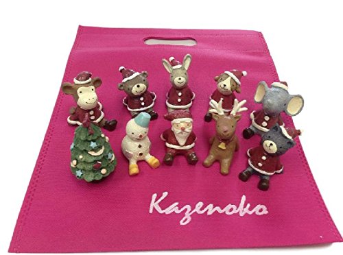 セット内容: 10種 + 収納袋 サイズ (約) : 4cm x 4cm x 5cm 重量 (約) : 30g~60g *サイズ、重量共に1個あたり、又柄によって多少異なります。 とても可愛らしいサンタの衣装を着た動物達とツリー、スノーマン、もちろん定番のサンタの10種セットとなります。 ツリーの下や家のオブジェとしても最適♪ 本製品を飾ってよりクリスマスらしい雰囲気を出してみませんか!? 収納袋は本製品を持ち運びたい時にあったら便利な一品♪