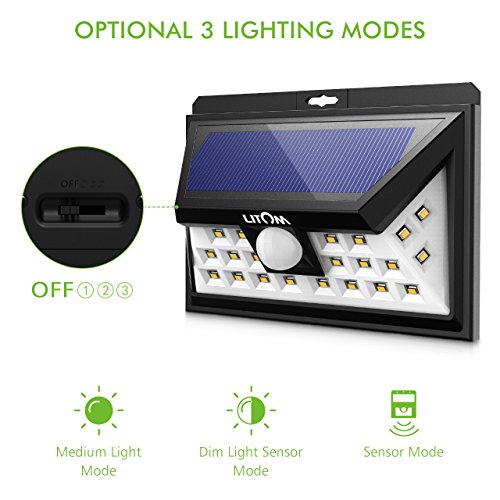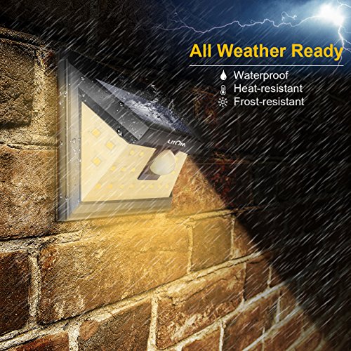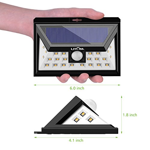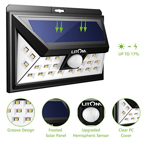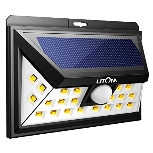 Litom 24 LED Solar Lights, Warm Light Super Bright Solar Wall lights Outdoor with Motion Sensor, Wide Angle Security Light for Patio Garden Garage Yard