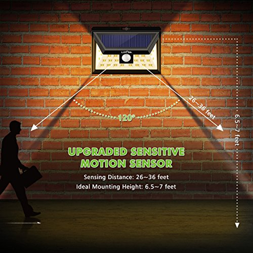 - WALK BY, LIGHTS ON: The sensitive motion sensor detects motion from up to 26 feet away. We recommend the appropriate installing height should be 5.6feet-6.6feet