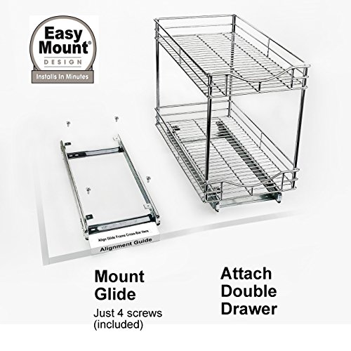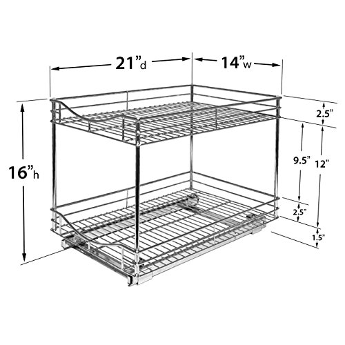 Lynk Professional Roll Out Double Shelf - Pull Out Two Tier Sliding Under Cabinet Organizer - Chrome - Multiple Sizes