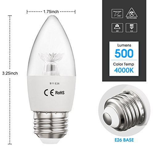 AED Lighting Candle Bulb LED Light Bulb Energy Saving 60watt Equivalent Led Bulb Non-Dimmable Daylight Ceiling Fan 6 Pack