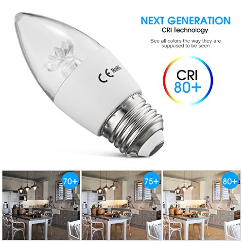 EASY TO INSTALL--Standard Candle shape with screw base (E26). More vivid and natural lights with high CRI(>80), Dimension of this LED light bulb: 110mm*30mm.