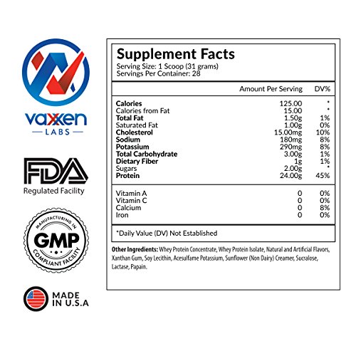 -. Binding : Health and Beauty -. Brand : Vaxxen Labs -. Feature : 24 GRAMS OF PROTEIN PER SCOOP - WHEYXX helps you reach your daily protein requirements without adding a ton of calories and carbohydrates to your diet. Reducing calories to remove some weight can only take you so far - but when you add WHEYXX, you can lose more body fat while preserving your muscles. Studies show that consuming a whey-based protein one hour before and after strength workouts will lead to increased size and strength of your muscles. / 3 EASY WAYS TO ENJOY WHEYXX - You can get your WHEYXX in daily no matter where you are with three easy ways to prepare and enjoy your whey protein supplement. Stir and sip from a glass, shake it up in your shaker bottle, or blend it like a smoothie - the choice is yours. / PUT YOUR BODY IN THE ZONE FOR MUSCLE BUILDING AND RECOVERY - WHEYXX has a positive nitrogen balance to put your body in the optimal state for muscle growth. The recommended daily protein consumption is 1-gram protein per pound of body weight. Enjoy birthday cake or blueberry muffin flavored protein shakes. -. ProductGroup : Health and Beauty -. ProductTypeName : HEALTH_PERSONAL_CARE -. Title : Vaxxen Labs WheyXX Whey Protein Powder Blend Birthday Cake 2LB