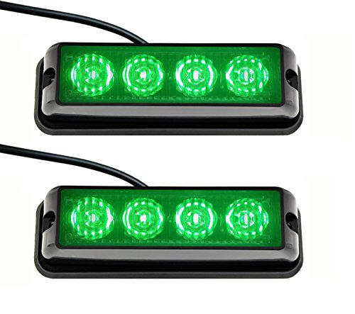 Strobelight Bar 4 LED with Super Bright Emergency Beacon Flash Caution Strobe Light Bar with 17 Different Flashing (2PCS) (Green)