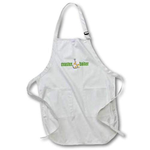 3dRose apr_116315_1 Funny Master Baiter Fishing Humorsports Design-Full Length Apron with Pockets, 22 by 30-Inch, White