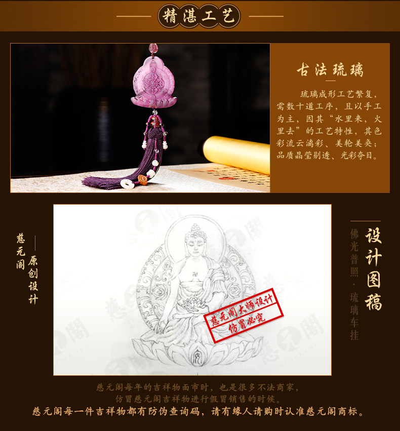 慈元阁开光狗年生肖琉璃汽车挂饰佛光普照后视镜平安挂件开运