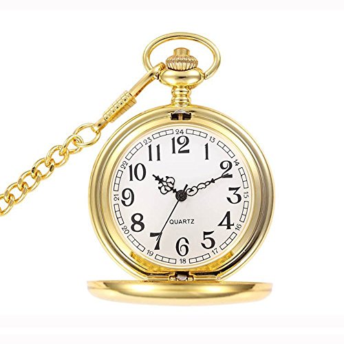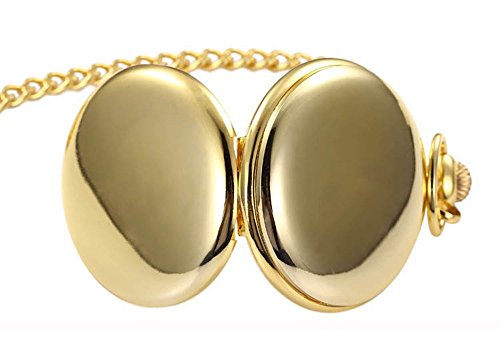 -. Title : SwitchMe Pocket Watch Golden Smooth Analog Japan Movement Watch with Belt Clip Chain